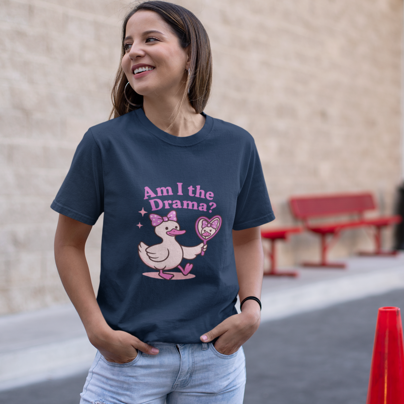 Serving self-awareness with a side of sass, this funny duck t-shirt is for those who can laugh at their own extra-ness. Featuring a pink bow-wearing duck asking, “Am I the Drama?” while side-eyeing itself in the mirror, it’s perfect for drama queens, reality TV lovers, and anyone who knows they might be the main character. Wear it and own the plot twist.