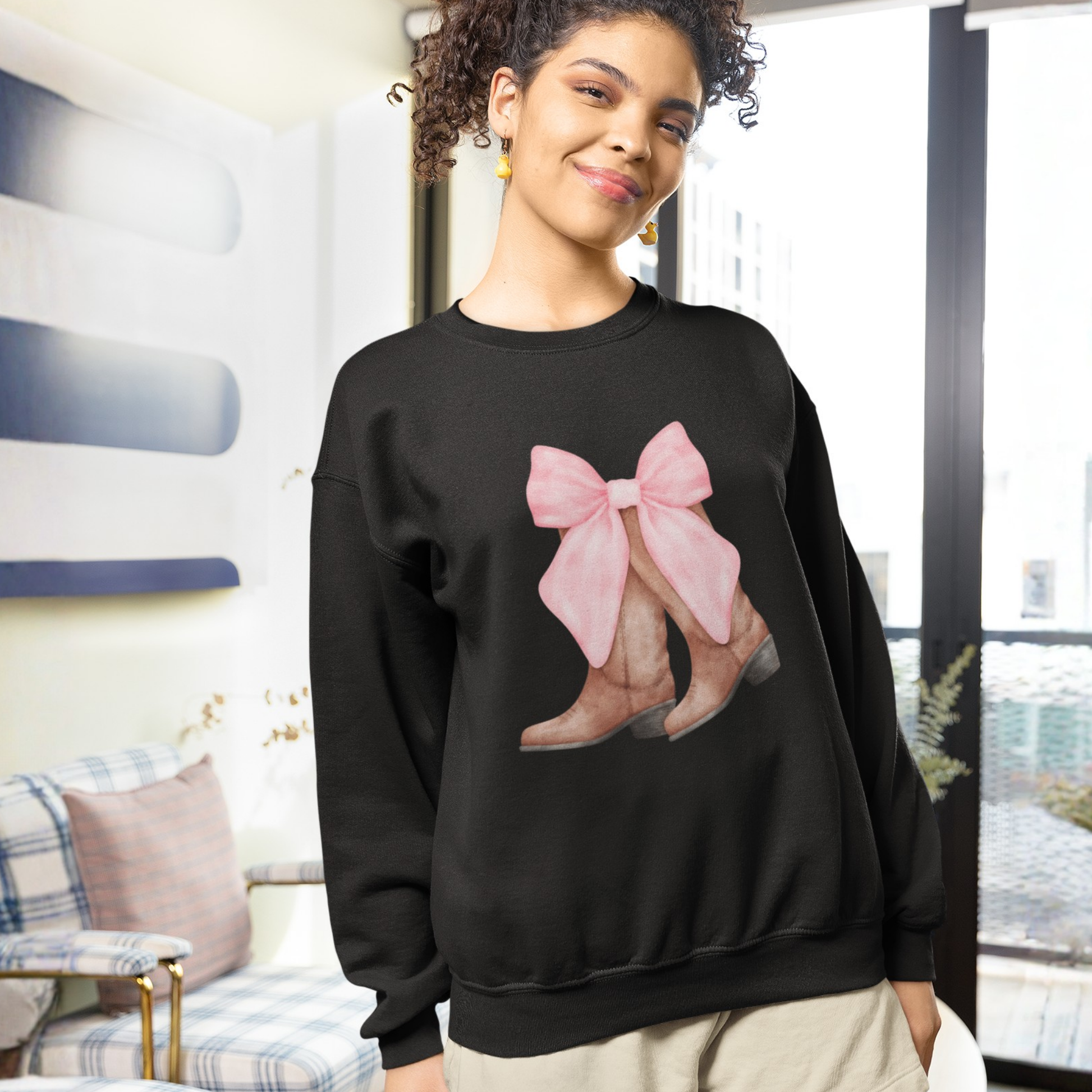This Blush & Boots design pairs warm Western boots with a dreamy oversized pink bow — the perfect balance of soft-girl energy and playful attitude. Cozy, cute, and effortlessly stylish, it’s crafted in thick 300 GSM cotton fleece for all-day comfort. Unisex, breathable, and made for brunch days, cozy evenings, and anyone who likes their style a little girly with a hint of yeehaw.