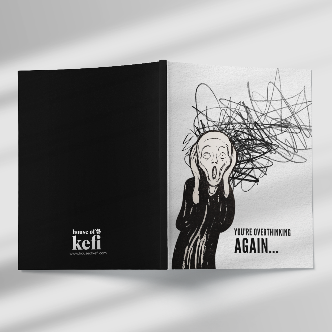 For the spiraling thoughts, the midnight what-ifs, and the anxiety loops with a playlist of doom. Brain: Please Shut Up is your hilarious yet painfully accurate reminder that sometimes the best therapy is just scribbling it all out. With a sketchy twist on "The Scream" and the words "You're overthinking again…" it’s practically a mirror—but on paper.