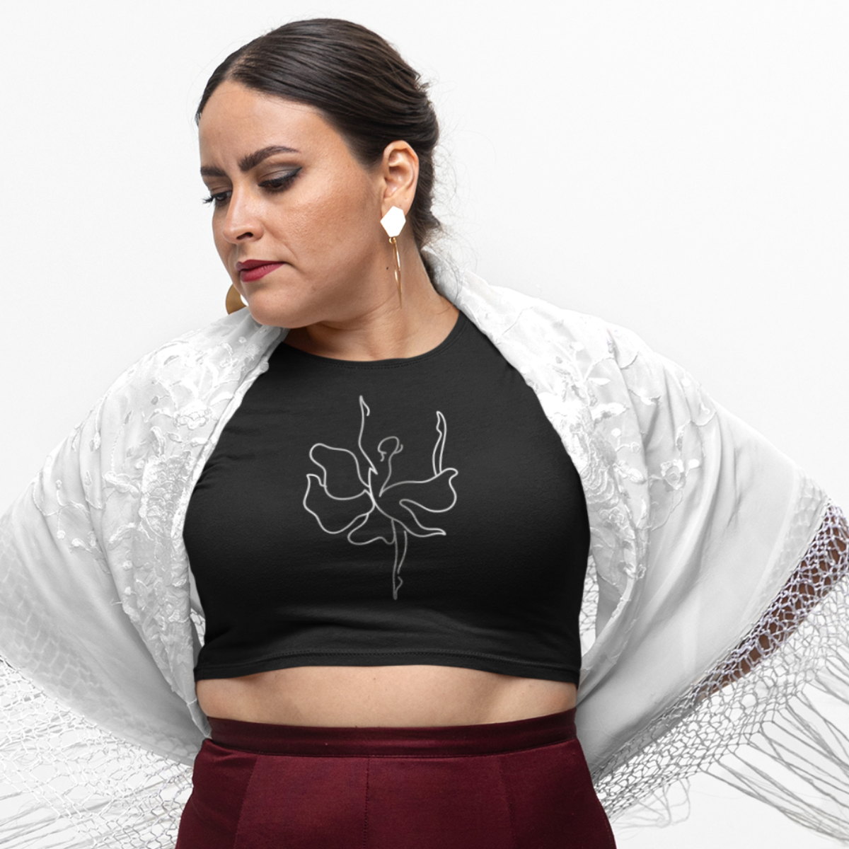 This black crop tee features a graceful dancer in shimmering silver vinyl, capturing the rhythm of self-expression in every curve. Whether you’re twirling through your room, vibing to your playlist, or just feeling yourself on a casual day out—this one’s for the soul that dances even when no one’s watching.