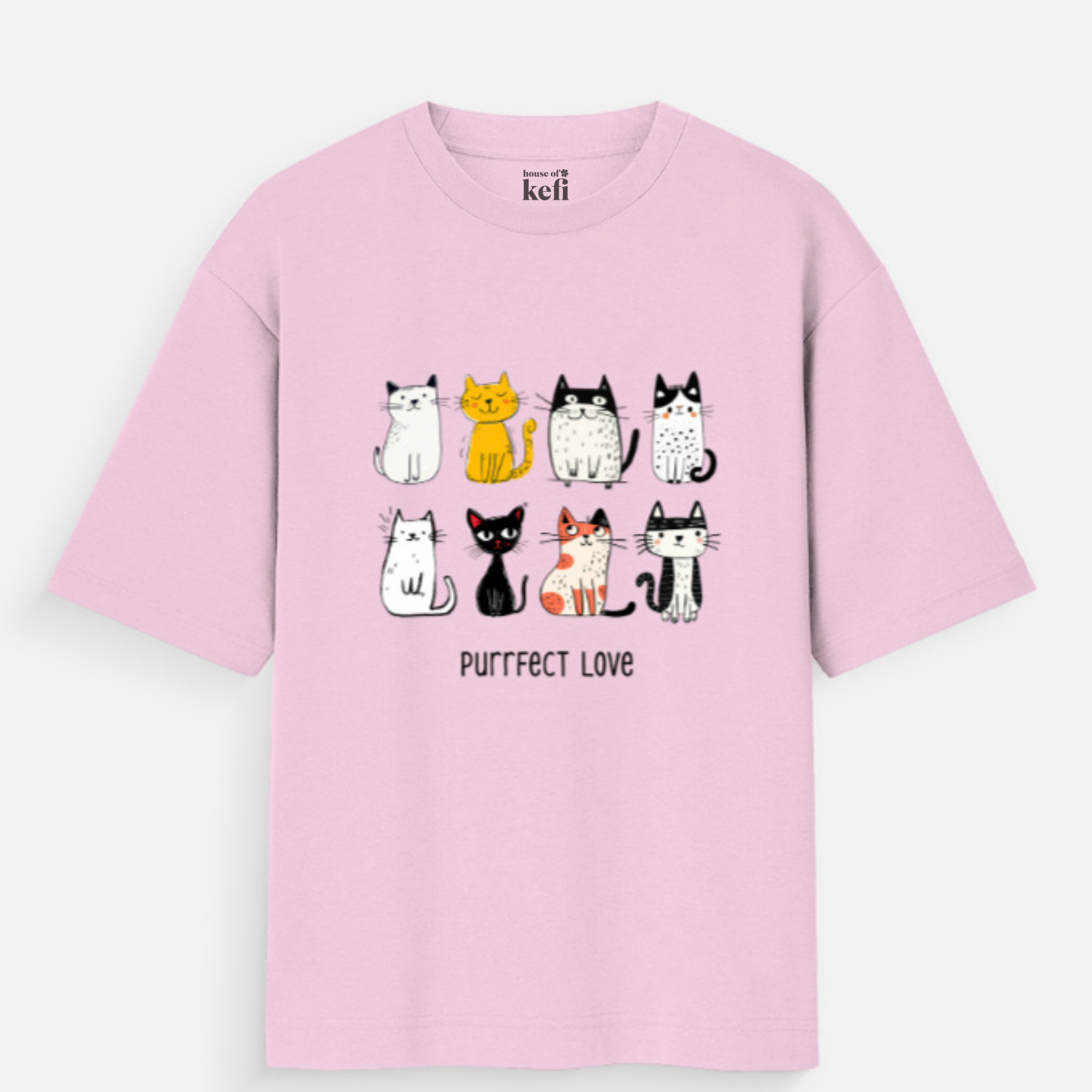 Nine cats. Infinite charm. This tee brings together a lineup of quirky, colourful kitties who prove that love comes in all shapes, sizes, and fur patterns. Perfect for cat parents, feline fanatics, or anyone who believes life is simply better with a purring companion (or nine).