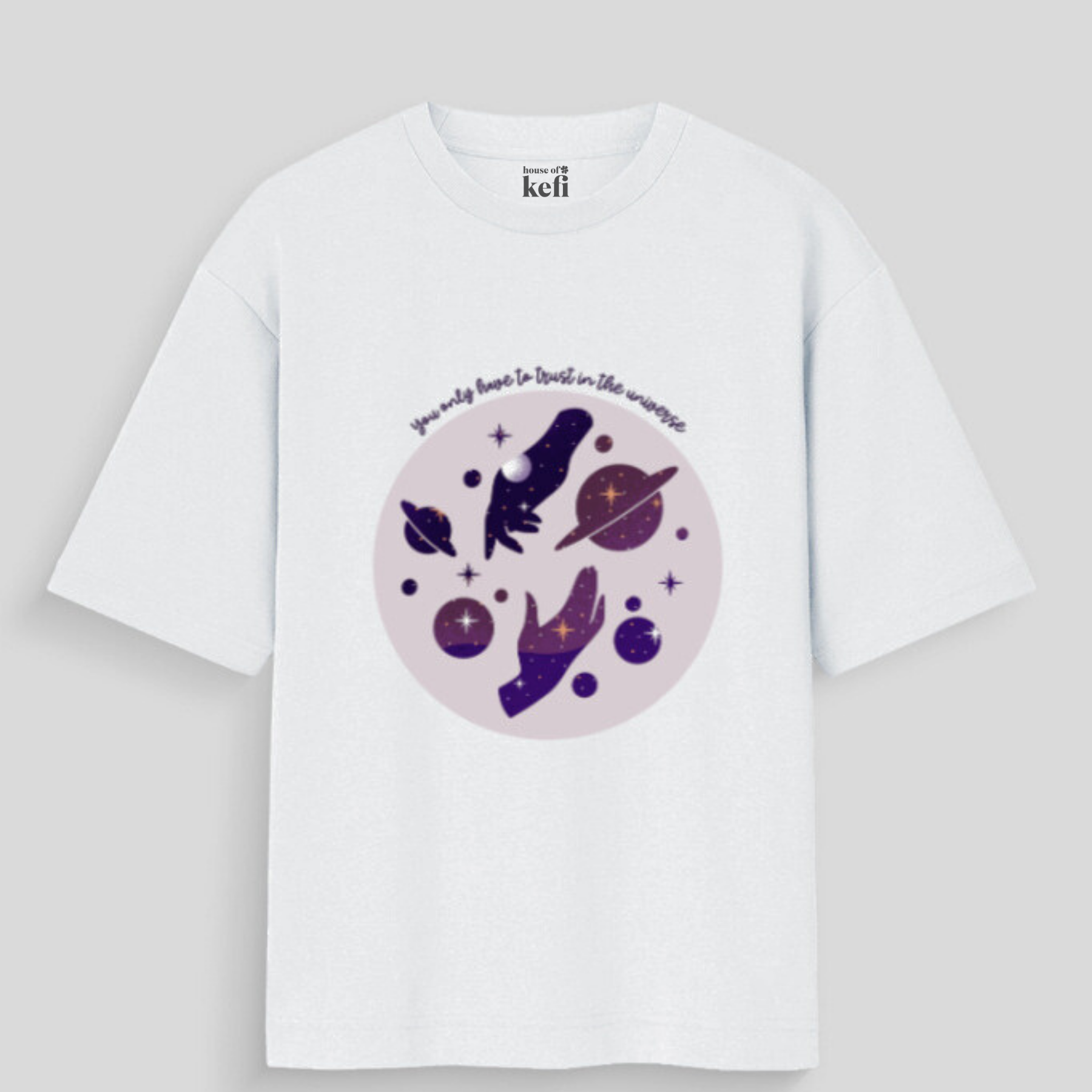 You don’t need a five-step plan. You just need faith. This tee is a gentle cosmic reminder that the universe has your back. With celestial hands floating among stars and planets, it’s a design made for dreamers, believers, and the divinely guided.