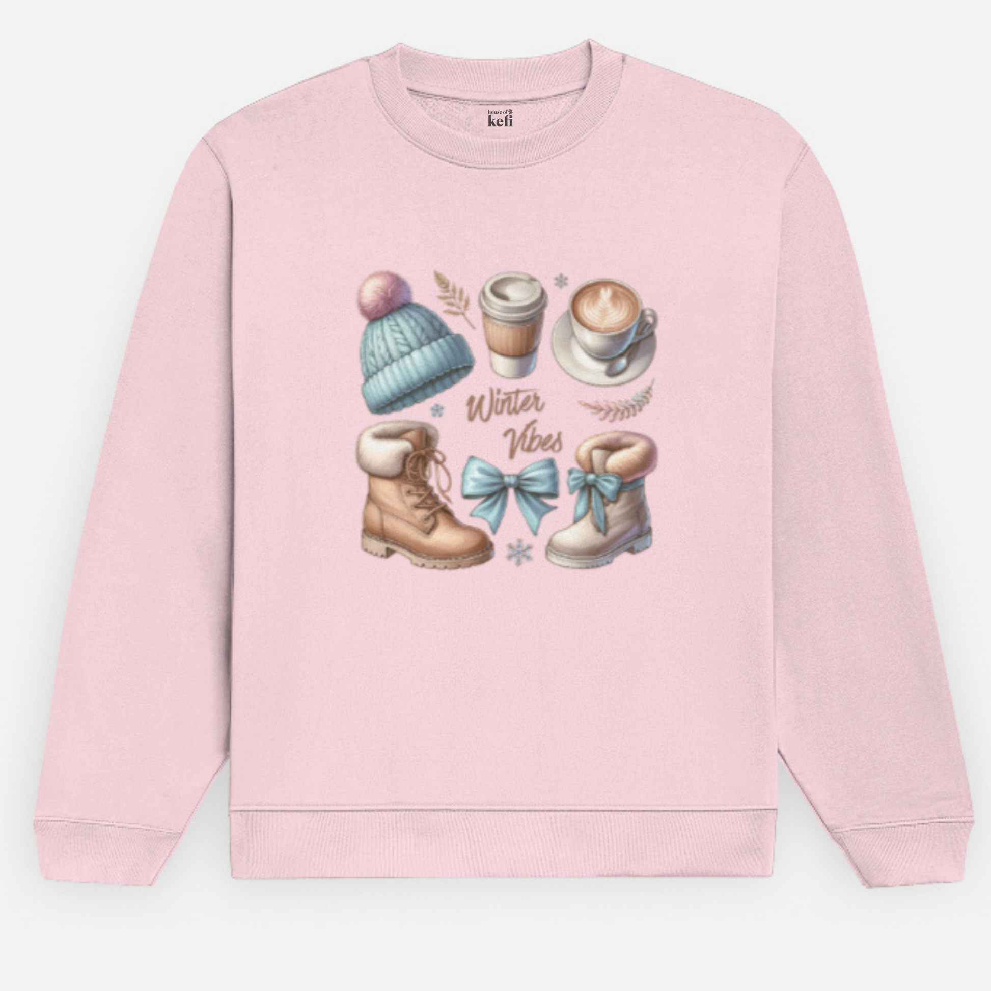 Soft boots, warm coffee, fuzzy knits — this sweatshirt packs all your favourite winter comforts into one adorable design. With cozy boots, latte art, a chunky beanie, pastel bows, and soft snowflakes, it brings instant cold-weather charm to your day. Crafted in thick 300 GSM cotton fleece, it’s warm, breathable, unisex, and perfect for everything from lazy mornings to holiday outings.